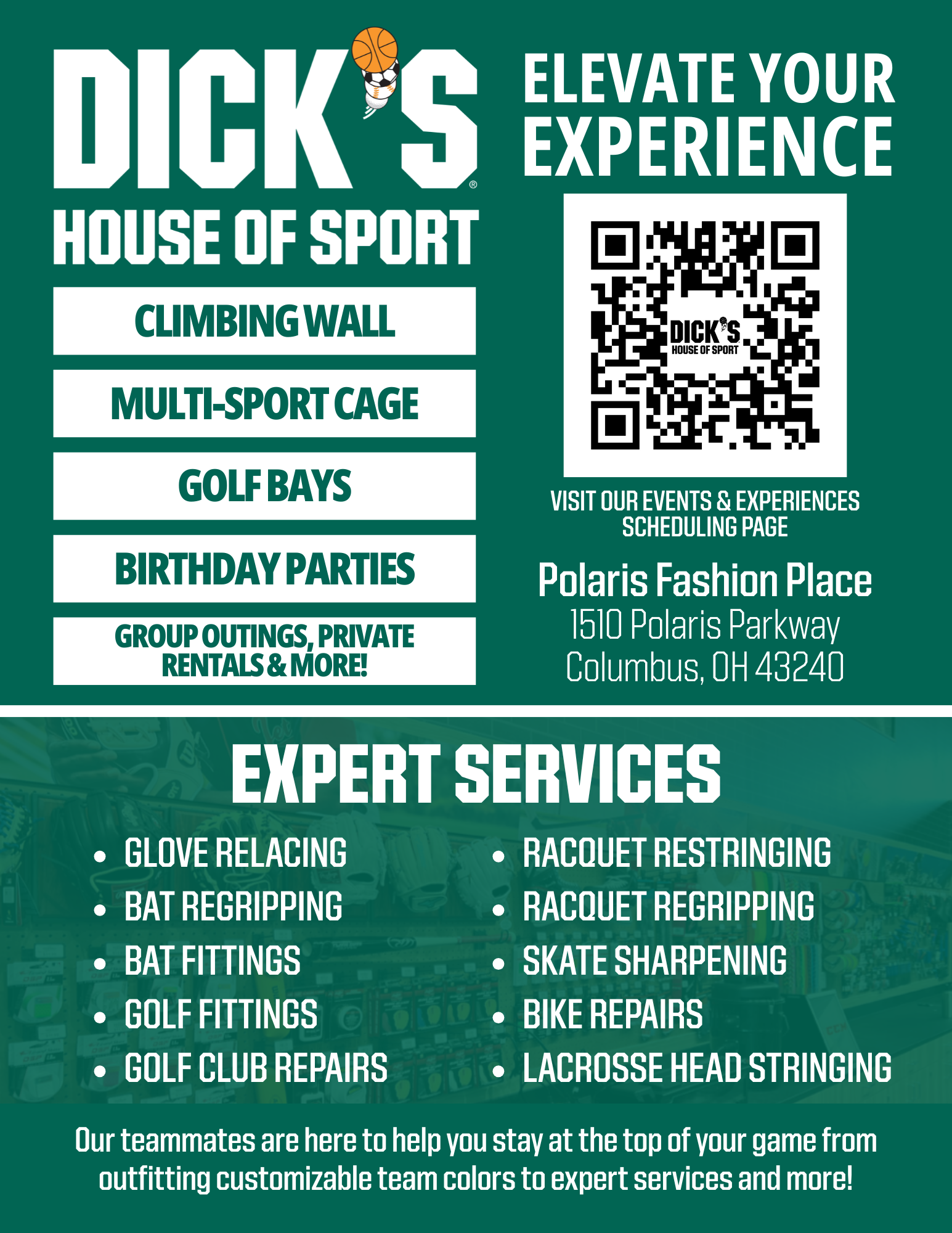 Check out DICK’S House of Sport at Polaris Fashion Place! DICK’S House of Sport is your destination for sport. Find top gear to perform your best, practice your skills, connect with your community, and attend special events in the new interactive space.