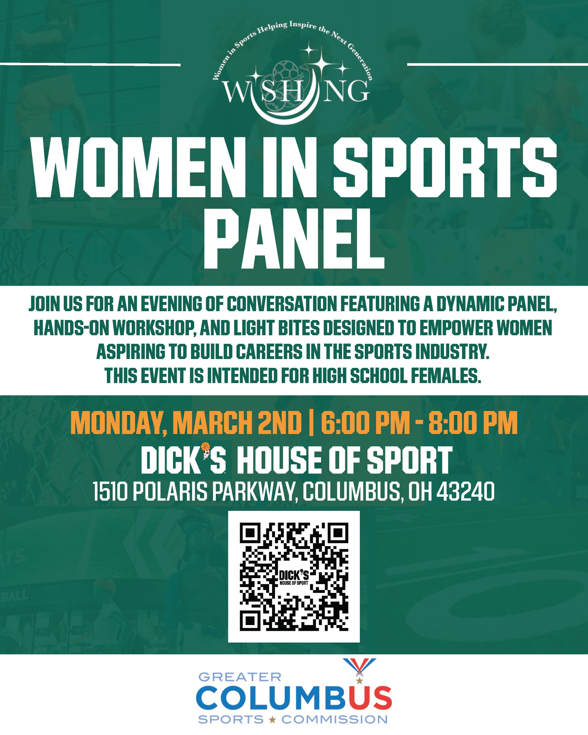 This event is intended for high school aged females. In partnership with WISHING and the Greater Columbus Sports Commission, this Women in Sports experience features a dynamic panel, an interactive workshop, and light bites, all designed to empower women aspiring to build meaningful careers in the sports industry.